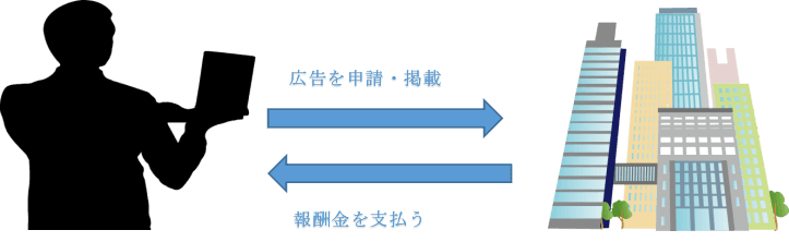 例えば、AさんがスポーツメーカーB社のテニスラケットの広告を、自身のブログに載せていたとします。そしてAさんのブログを訪れた誰かがその広告をクリックして、そのリンク先のサイトで商品を買うと、商品の種類や金額に応じてB社からAさんに、あらかじめ決められた報酬金が支払われます。