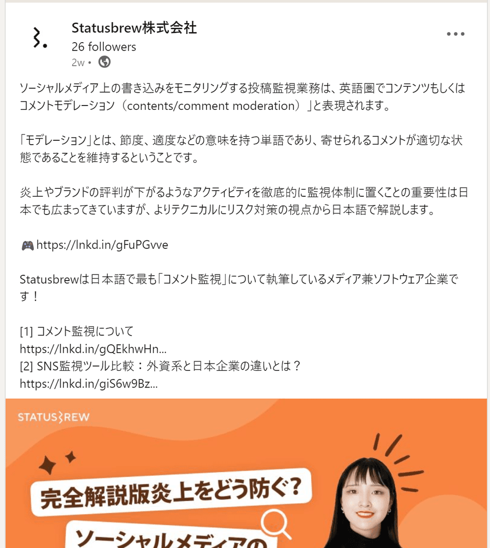 先に上げた、LinkedInで発信する内容や、Webサイトに掲載するブログなどのコンテンツとしても使えます。コメント監視に関する内容を発信し続けることで、専門性や独自性をアピールすることにも繋がるでしょう。