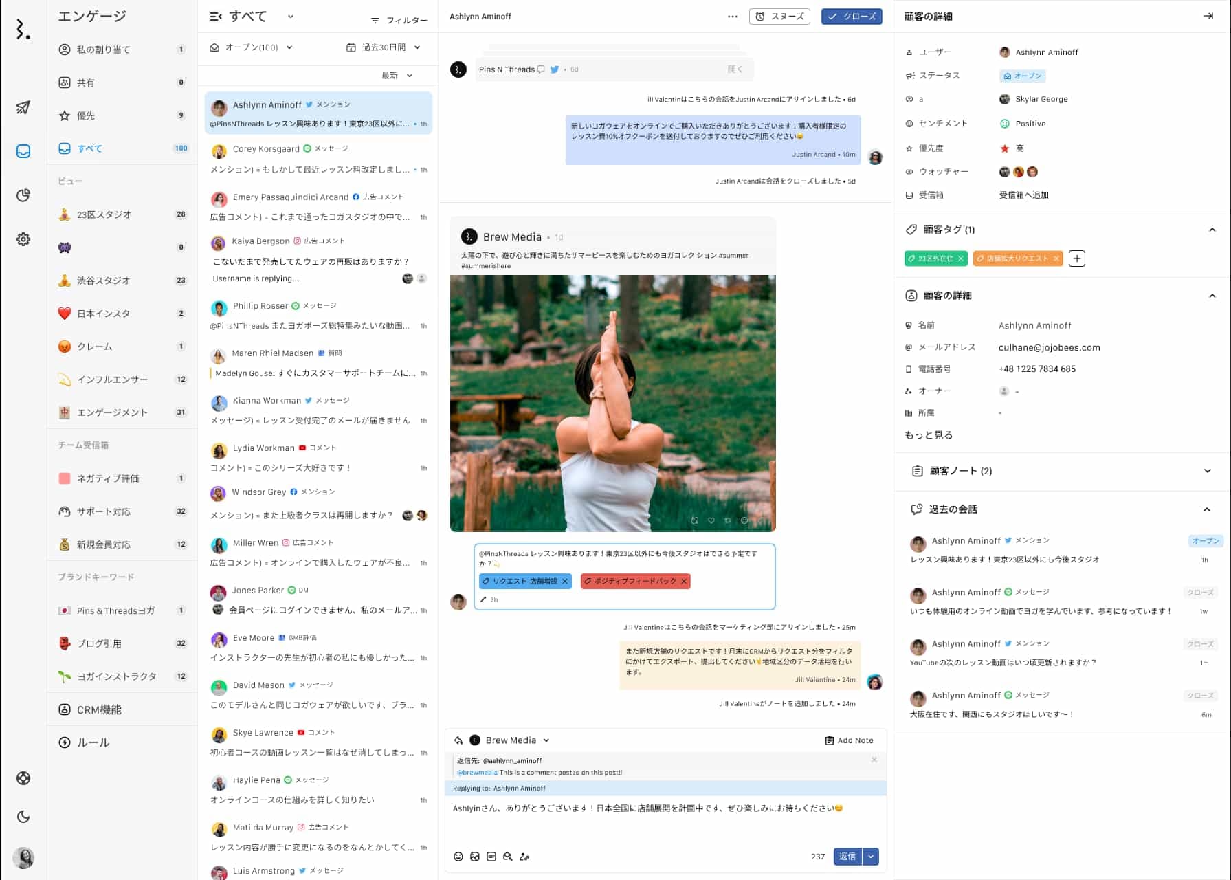 LINE、Twitter、Google My Business、Instagram、そしてFacebookとメッセージのやりとりがしやすいチャネルを相互作用させることで、顧客の反応をリアルタイムに監視、そして様々な方法を試すことができます。