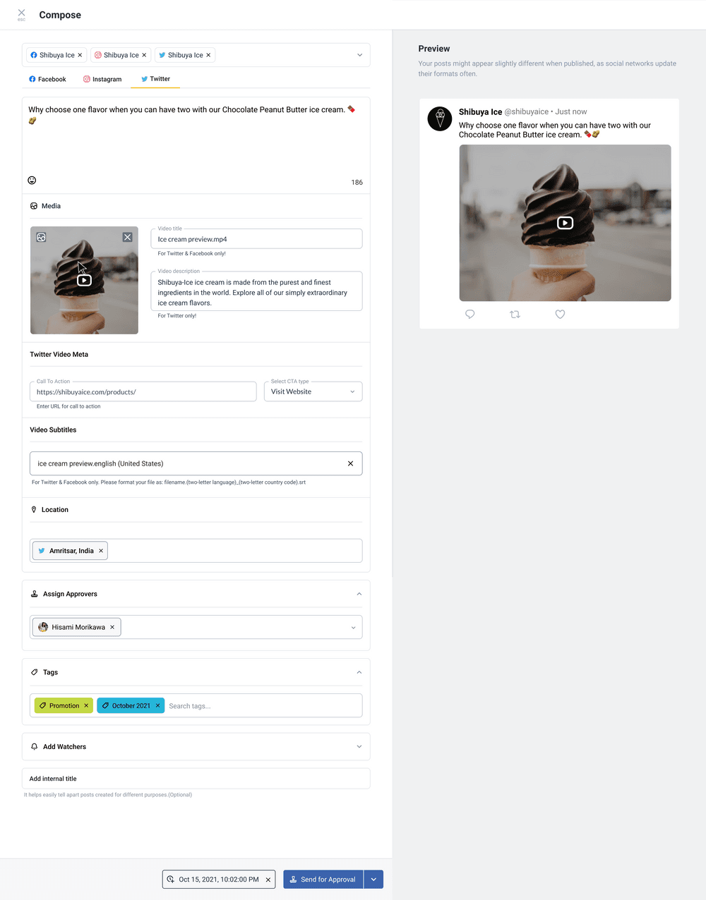 StatusbrewのプランナーはTwitterをはじめとしたソーシャルメディアの予約一覧管理表です。複数のTwitterアカウントもアカウントごと、タグごと、投稿担当者ごと、などに分けて管理することができます。