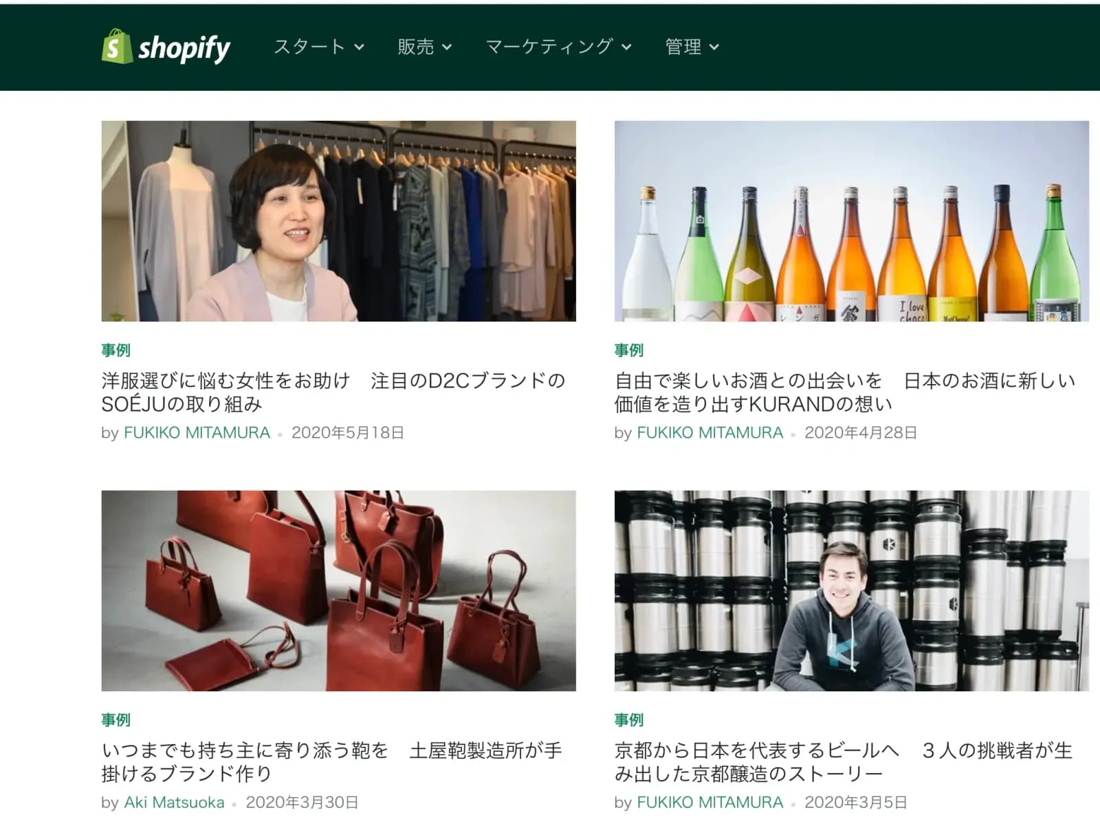 EコマースプラットフォームのShopifyは実際のユーザーと協力して、サイトをどのように利用しているかのストーリーを共有するブログ記事を作成しています。(無料で読めます)このコンテンツは、一種のケーススタディのような役割を果たし、ユーザーをブランドの支持者として位置づけます。ユーザーはブランドの露出を得ることができますし、Shopifyはマーケティングリソースとして使用でき、ソーシャル・プルーフを得ることができるため、win-winと言えるでしょう。